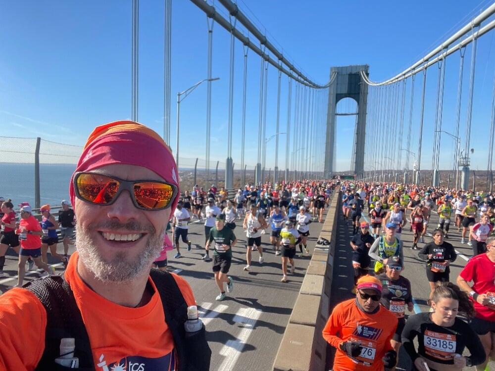 Ein Ausschnitt des Marathons in New York City auf der Verrazano-Narrows Bridge
